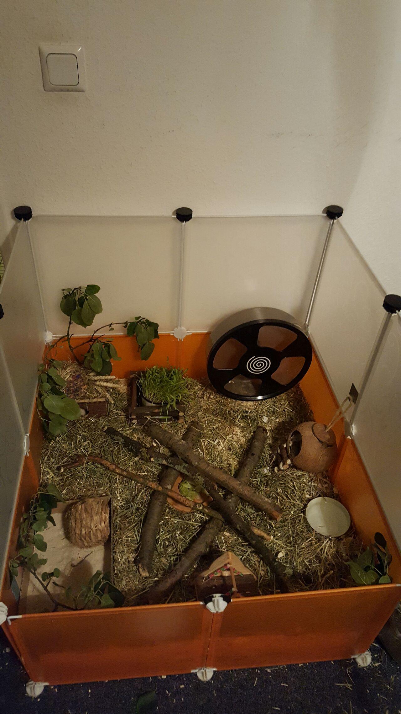 1. 挑选笼子。47cm就合格? 真的不敢苟同。在欧美国家,对于仓鼠笼的大小动物保护法都有严格的规定。德国兽医建议大小不低于0.5平米,但是现成的合格笼子大都不便宜。于是仓鼠爱好者们想了很多替代方法,比如用鱼缸:或者是魔片DIY: